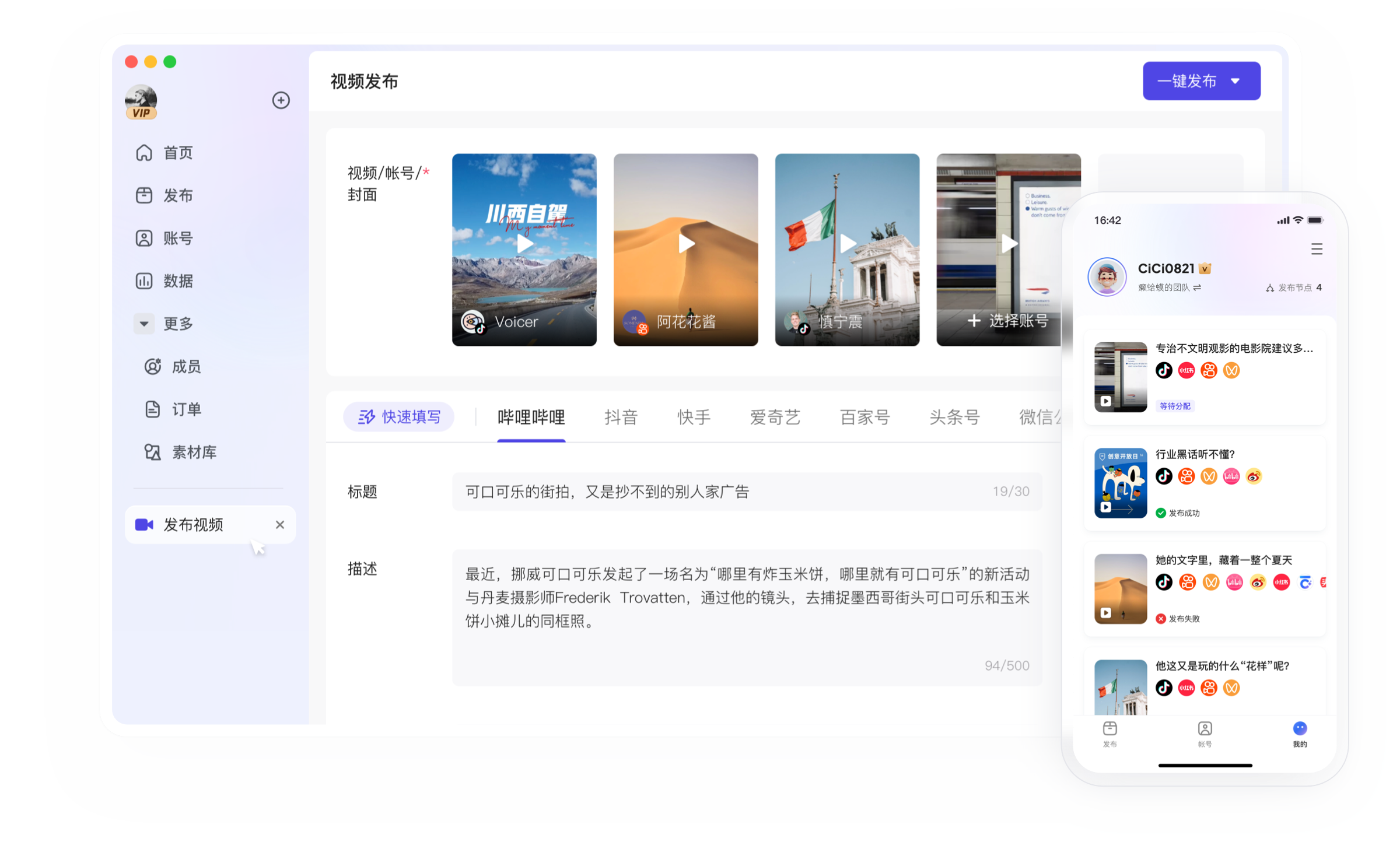 支持多平台视频、图文、文章一键发布
